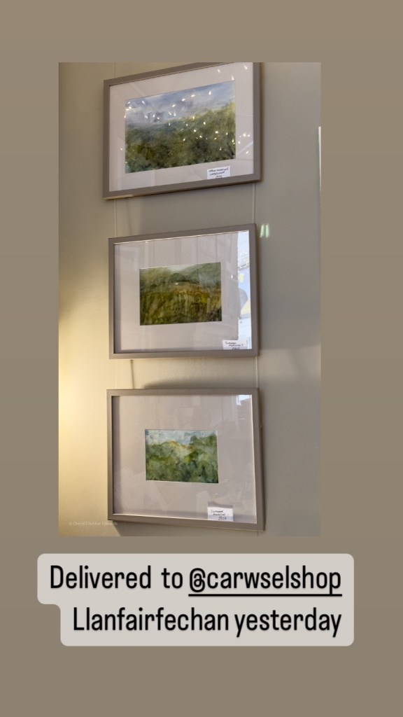 Watercolours delivered to @carwselshop Llanfairfechan yesterday. I think I need a wall painted that colour it makes the colours ‘sing’. #watercolours #watercolourpainting #contemporarywatercolour #welshart